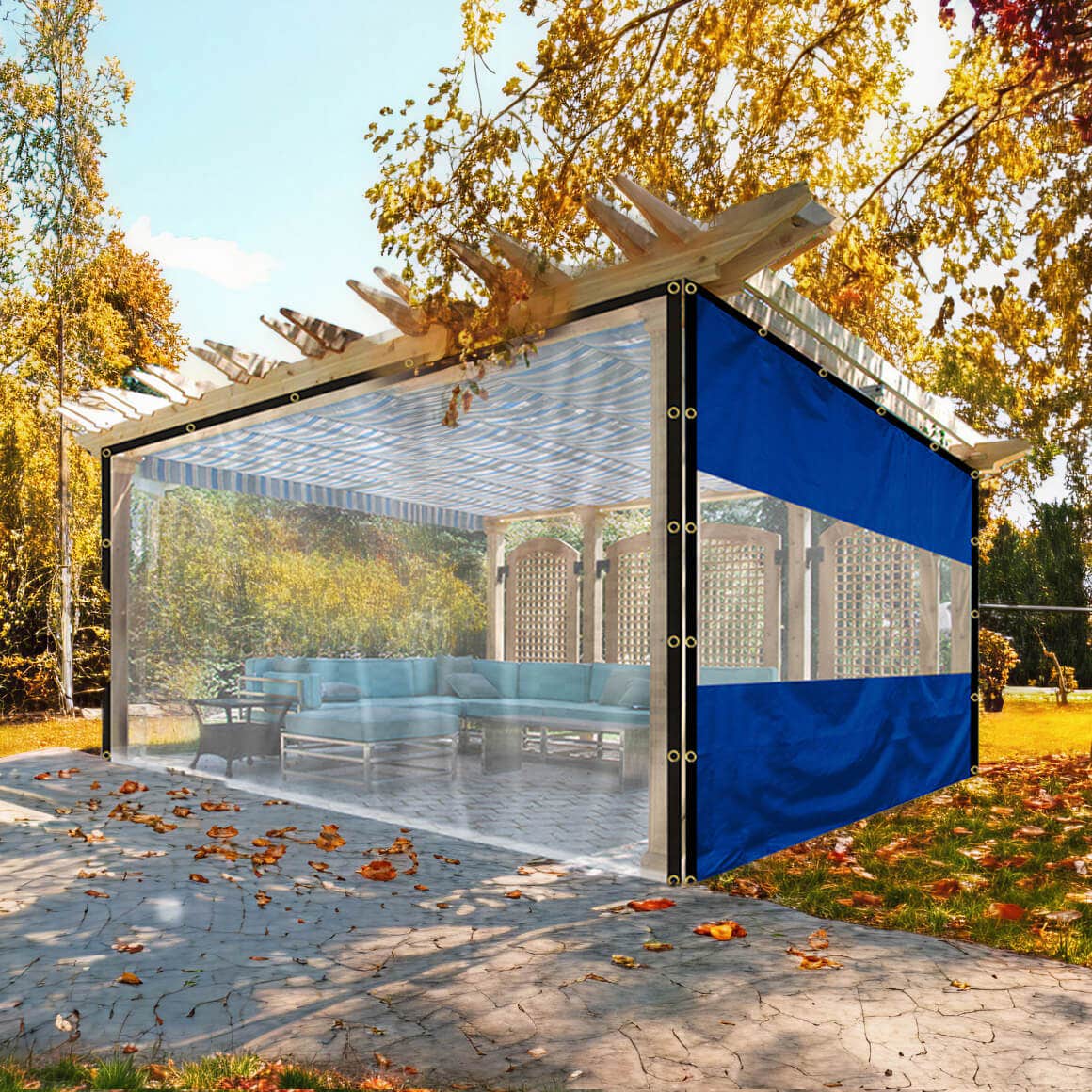 If your patio includes a pergola or shade structure, don’t ignore it during seasonal change. Strong winds and heavy rain can stress joints and fabrics. Installing or upgrading custom pergola covers adds another layer of patio protection, reducing water exposure and improving overall stability. A covered space also protects everything underneath it.