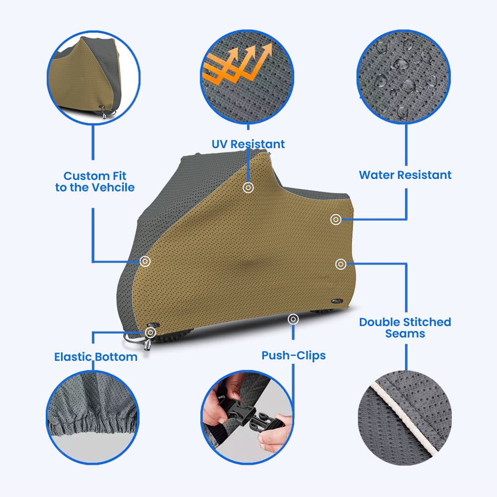 By allowing air to pass through, our covers prevent excessive heat from building up. As a result, the motorcycle's paint and interior components are prevented from being damaged by trapped heat because they facilitate the easy release of heat.